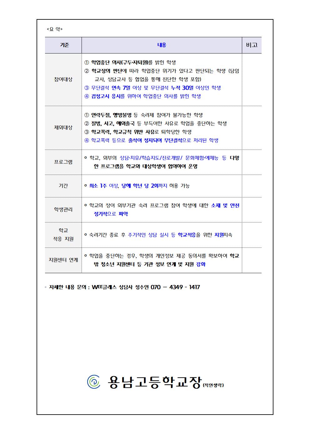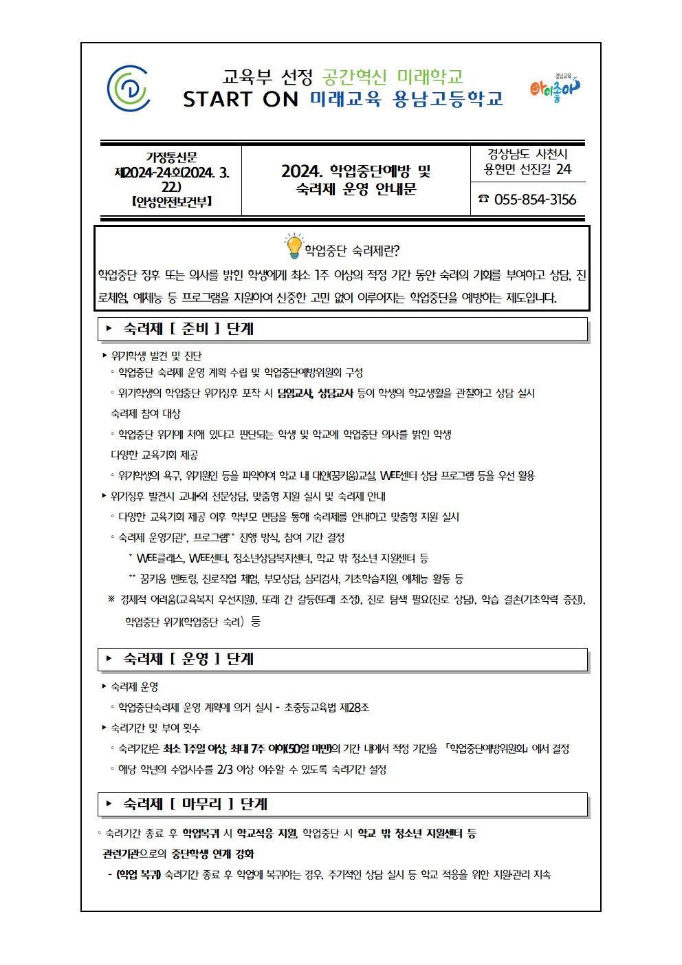 [2024-24호] 학업중단예방 및 숙려제 운영 안내