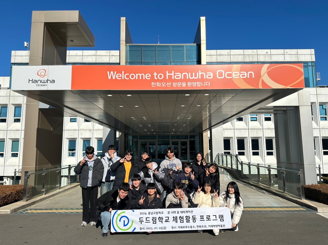 2024. 두드림학교 체험활동 프로그램의 마지막 코스로 거제포로수용소- 한화오션- 거제 해양조선 박물관 견학을 하였습니다. 한국사 시간에 학습한 한국전쟁에서의 포로수용소의 의미와 통합과학시간에 학습한 세계 최고의 기술력을 바탕으로 친환경 선박시장과 해양에너지 산업의 패러다임을 주도하고 있는 우리나라의 상선 및 특수선 건조 기술을 확인하고, 지구와 생명의 근원인 대양을 통해 인류의 삶을 더욱 퐁요롭게 만들어 나가겠다는 다짐을 하였습니다. 실제 선박을 인도하는 명명식을 체험하면서 '2025 용남호'의 순항과 건승을 기원하였습니다. 학교 복귀 후 교장선생님과 저녁을 함께하며 담소를 나누는 시간으로 하루를 마무리하였습니다.