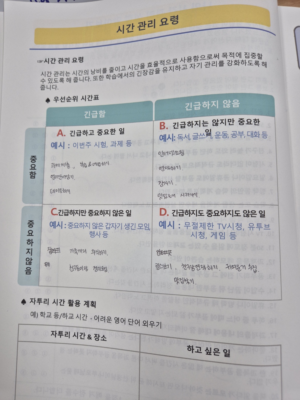 학생들이 고등학교에서 어떻게 학습을 할 것인지에 대한 과목별 전략, 자기주도학습을 위해 학습 계획을 어떻게 구성할 것인지에 대해 설계하는 시간을 가졌습니다.