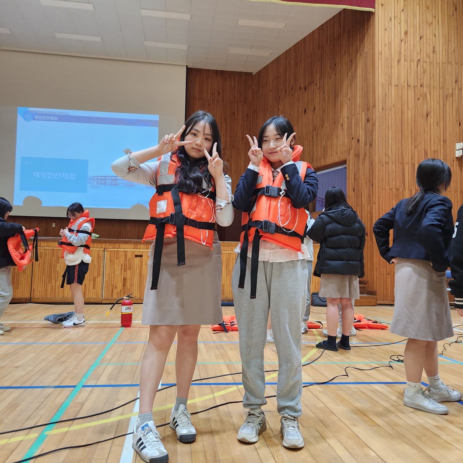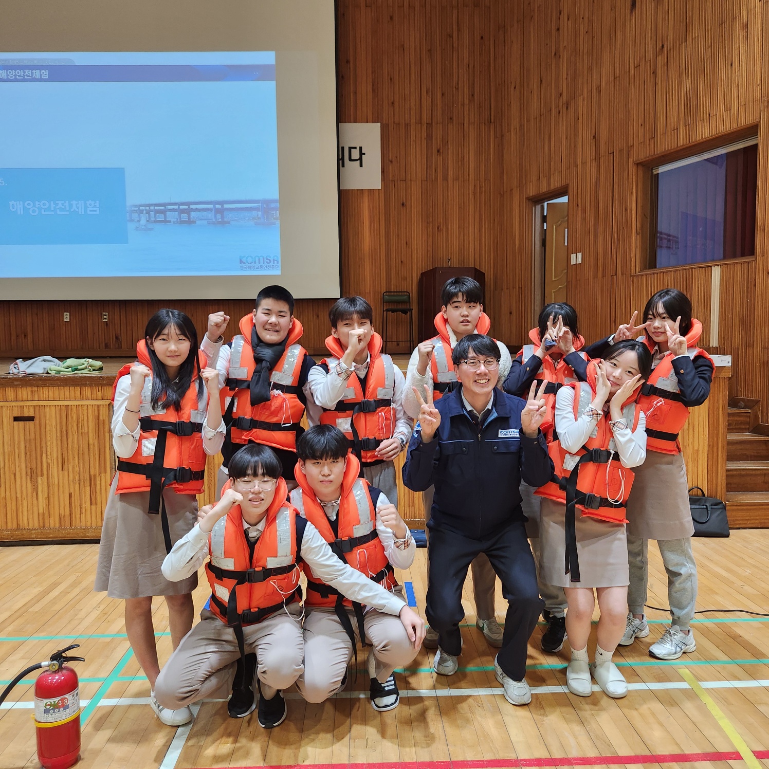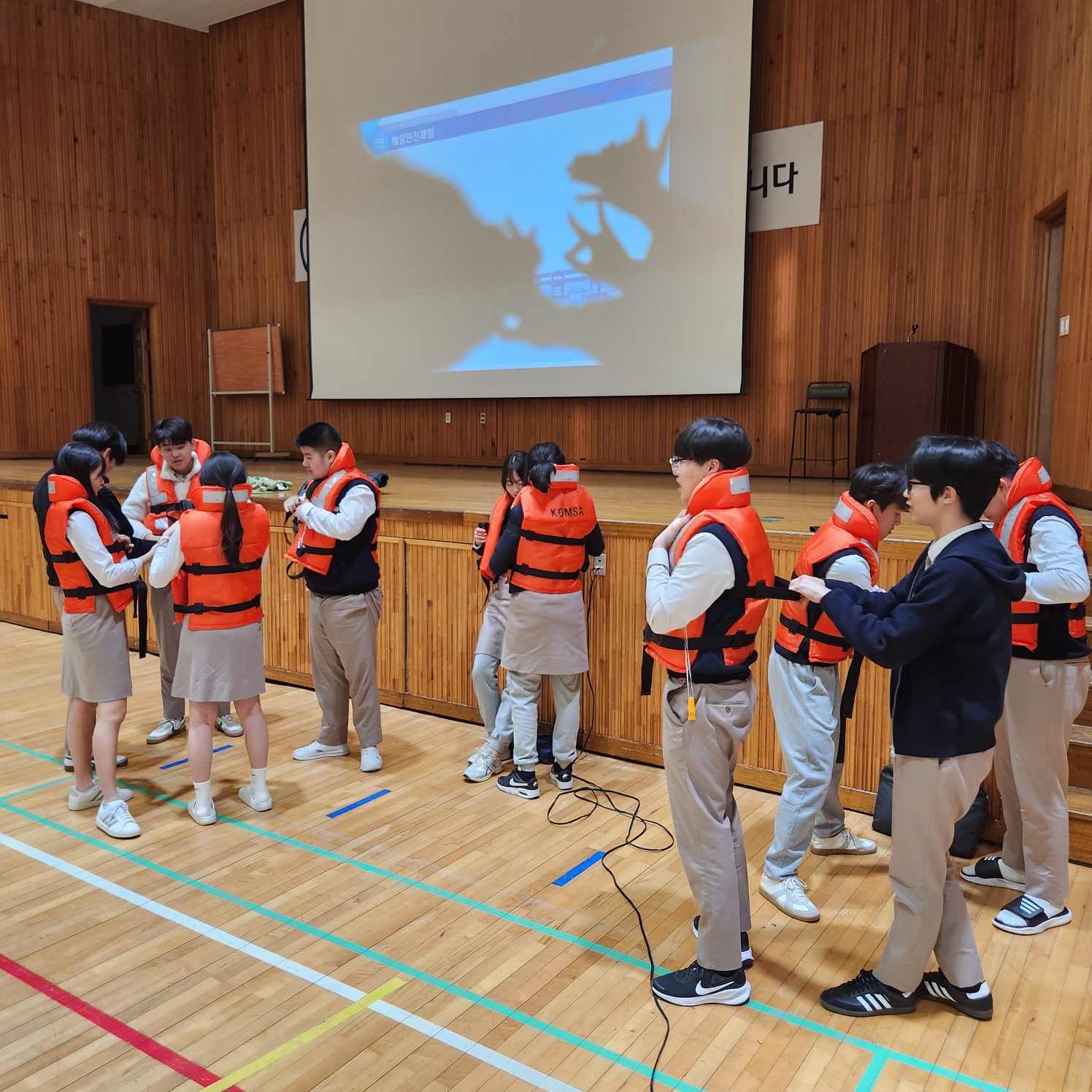 한국해양교통안전공단의 지원으로 학생들이 안전하게 수학여행을 다녀올 수 있도록 여객선 안전교육을 실시하였습니다.